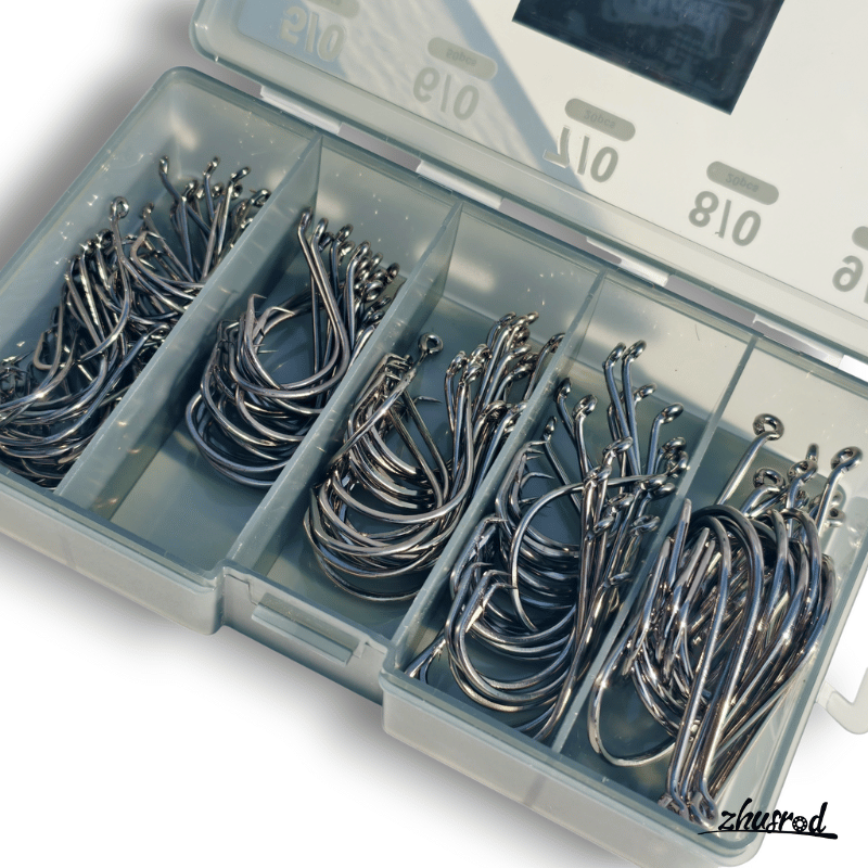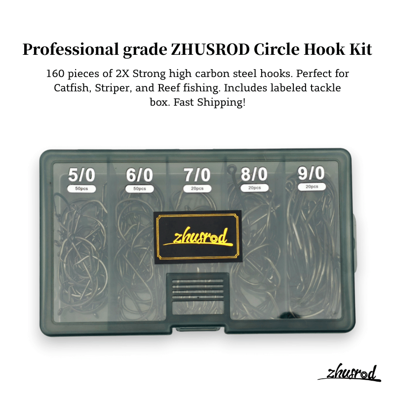 ZHUSROD 160個 サークルフック詰め合わせキット 高炭素鋼釣りフック 2倍強力オフセットタコフック 海水淡水用 サイズ 5/0 6/0 7/0 8/0 9/0 タックルボックス付き
