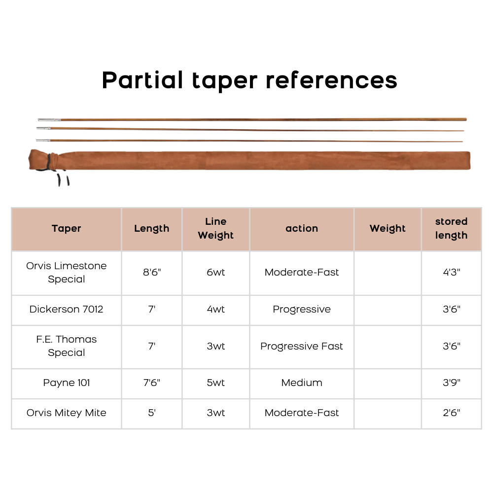 We offer many classic tapers such as: Leonard, F.E. Thomas, Orvis, Payne, Heddon, Garrison, Hardy, Dickerson...